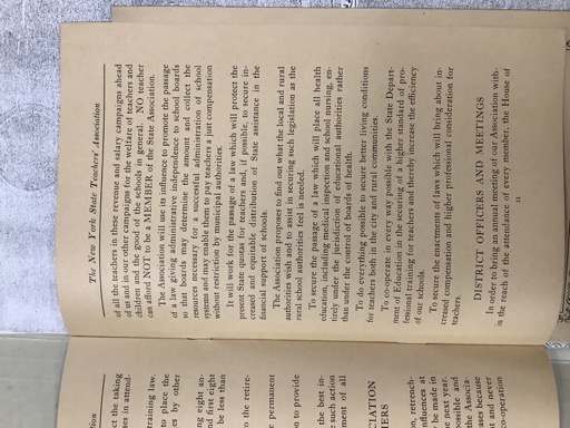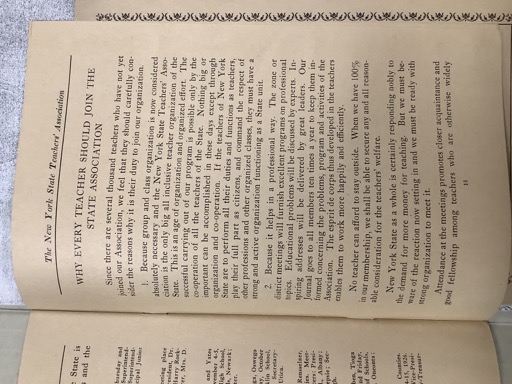 New York State as a whole is certainly responding nobly to the demand for more money for teaching. But we must be ready with the reaction now setting in and we must be with strong organization to meet it. Attendance at the meetings promotes closer acquaintance and good fellowship among teachers who are otherwise widely separated. [stamp: New York State Teachers’ Association]