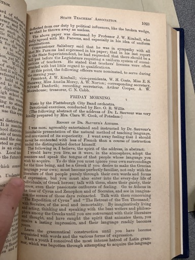 President, J. W. Kimball; vice-presidents, W. H. Coats, Miss E. S. Hanaway, Miss Amelia Morey, A. W. Norton; corresponding secretary, Arthur Cooper; recording secretaries, Edward Danforth, A. W. Moorehouse; treasurer, C. N. Cobb.