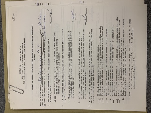 a. What was the total salary increase (including regularly scheduled increments) given the average (typical) classroom teacher in your district for 1964-65?