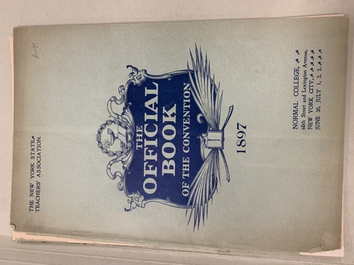 Labeled envelope or folder S0023 Envelope or folder Untitled Document Source Images img_0252 img_0253 Transcription 346-19 THE OFFICIAL BOOK OF THE CONVENTION 1897 THE NEW YORK STATE TEACHERS’ ASSOCIATION NORMAL COLLEGE, 68th Street and Lexington Avenue, NEW YORK CITY, JUNE 30, JULY 1, 2, 3, 1897 [stamp: New York State Teachers’ Association]
